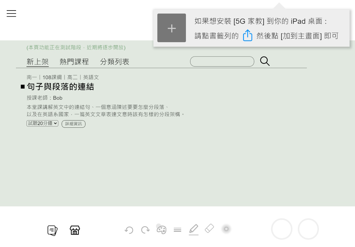 weTutor 實現即時互動一對一家教,在平板上做到 {數位教材、雙向視訊、共筆白板} 功能, 透過 4G/5G/家用網路,讓教者與學生獲得聲歷其境的體驗。